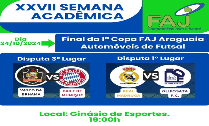 Glifosata vence Real Madruga e conquista a Copa FAJ Araguaia Automóveis de Futsal Em uma final emocionante e disputada, a equipe Glifosata sagrou-se campeã da Copa FAJ Araguaia Automóveis de Futsal...
